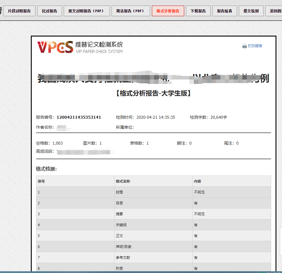 维普网论文检测系统,采用国际领先的海量论文动态语义跨域识别加指纹比对技术,通过运用最新的云检测服务部署使其能够快捷、稳定、准确地检测到文章中存在的抄袭和不当引用现象,实现了对学术不端行为的检测服务。系统主要包括已发表文献检测、论文检测、自建比对库管理等功能,可快速准确地检测出论文中不当引用、过度引用甚至是抄袭、伪造、篡改等学术不端行为,可自动生成检测报告,并支持PDF、网页等浏览格式。详细的检测报告通过标红相似文档、饼状图,形象直观地显示相似内容比对、相似文献汇总、引用片段出处、总相似比、引用率、复写率和自写率等重要指标,为教育机构、科研单位、各级论文评审单位和发表单位提供了论文原创性和新颖性评价的重要依据。经过不断发展和努力,已经在众多行业和部门得到了广泛使用,受到了用户的高度评价。